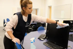 Commercial cleaning involves the professional cleaning of business environments such as offices, schools, and healthcare facilities. It’s carried out by trained specialists using approved equipment and cleaning systems.